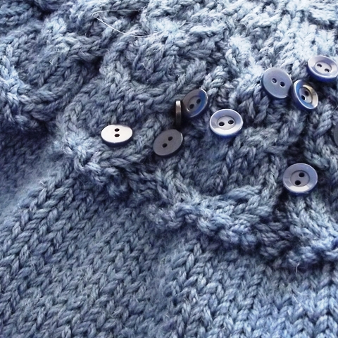 I sewed on 44 buttons in total and it took AGES. I did most of them while watching videos on YouTube and it took forever. I think the buttons actually took longer to sew on than the sleeves took to knit.