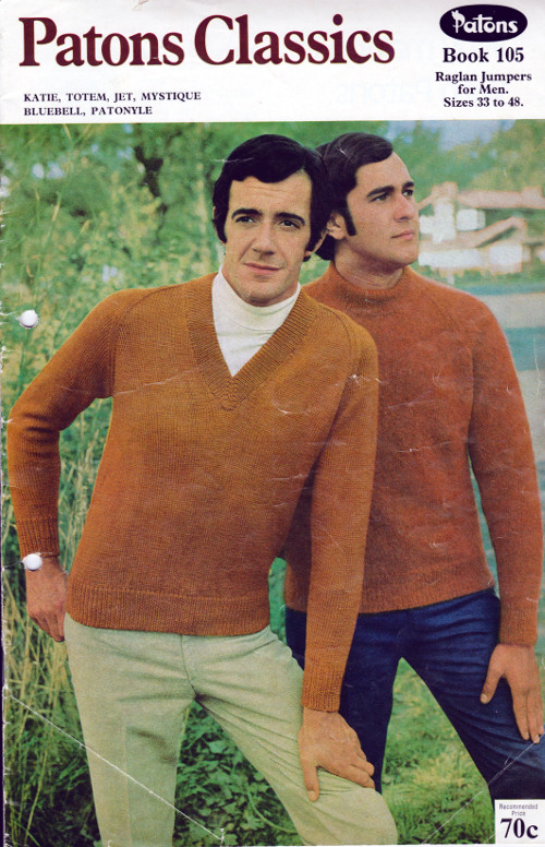 Patons have been issuing leaflets and books as part of their Classics series for decades. They usually contain raglan sleeved jumpers in 5ply and 8ply yarns with vee, crew and polo necks. Later editions have cardigans too – again in both 5 and 8ply weights and various necklines.