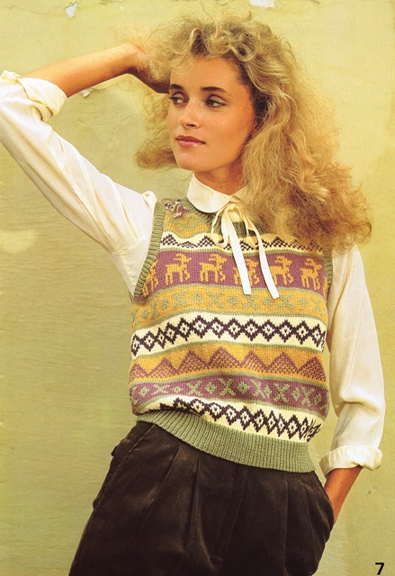 The fair isle vest just needs a change of colour. It could even make a great novelty Christmas knit in green, red and white with those little reindeer in the design.