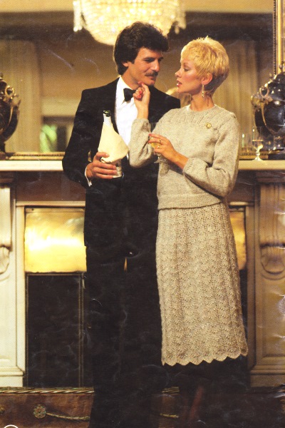 I’m sure the fibre blend of Cleckheaton Mousse made it unsuitable to wear next to the skin. I’m really worried for the model in the centre picture who forgot to put on her blouse.