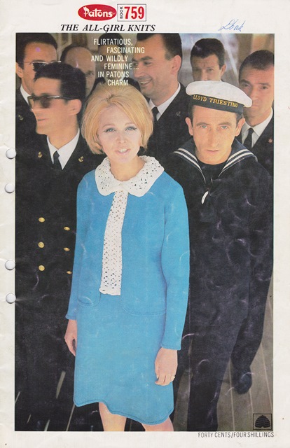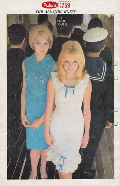 These dresses are from a Paton’s pattern booklet that I’d place in the late 1960s. We have here examples of two styles from the late 60’s that I find equally unappealing.