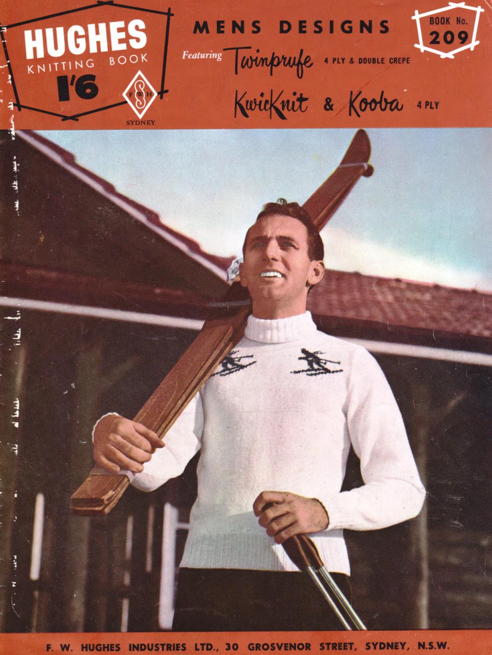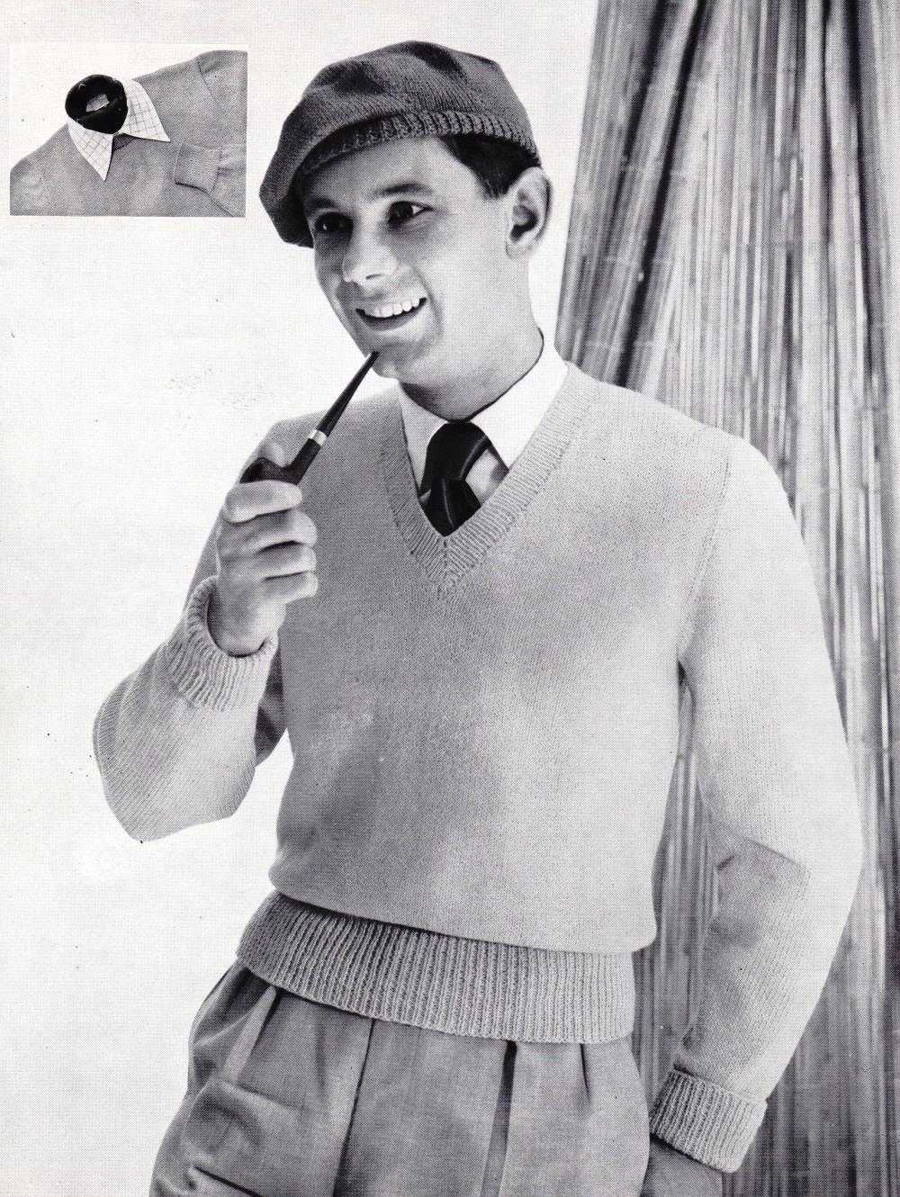 I think this one is from the early to mid 50s based on the fonts used on the front cover, the slightly quiffy haircuts on the man in the red jumper and the fact that the jumpers finish just below the waist. As the 50s continued, men’s jumpers became boxier and less form fitting – so I’m fairly sure there are from the early half of the decade.